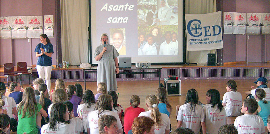 Göhl: Ja, Christine Rebhan, die sich seit Jahren in der CED-Gruppe engagiert, wird Anfang September nach Tansania fliegen. Vier ihrer Schüler werden sie begleiten, um Stoff für ihre Seminararbeiten zu sammeln, darunter eine Dokumentation über die Entwicklung der Palotti-Schule sowie ein AIDS-Projekt. Frau Rebhan war bereits vor einigen Jahren vor Ort und konnte uns eindrucksvolle Geschichten erzählen, die weiter motivieren, diese tolle Einrichtung langfristig zu unterstützen.